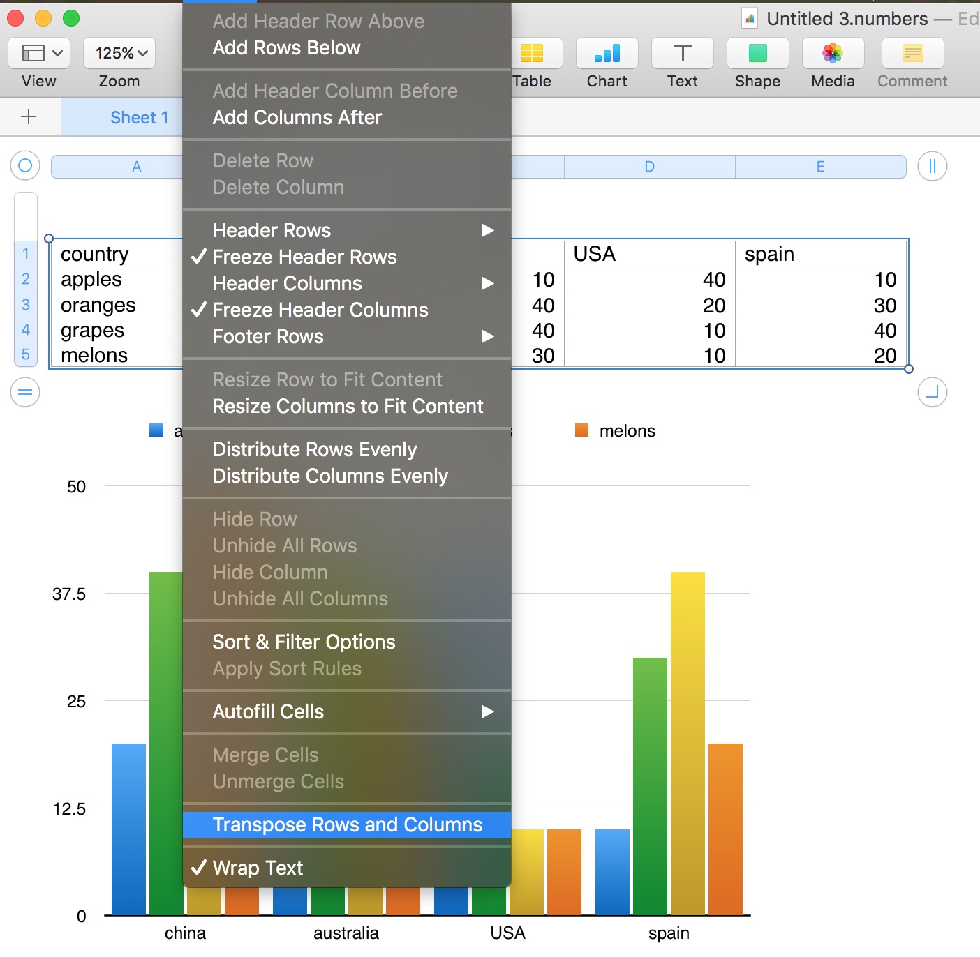 Hi. My kids are using Numbers 4.1 and we want to simply switch rows and columns. See below for Excel example.