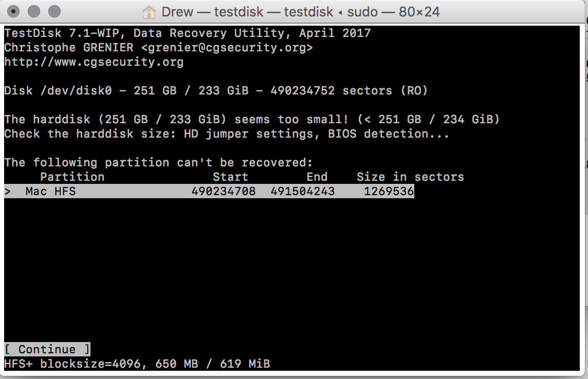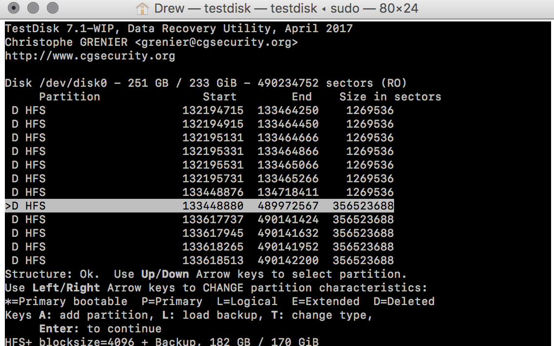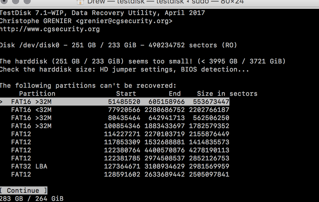 gpt show: /dev/disk0: Sec GPT at sector 490234751