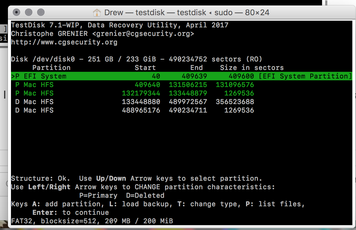 Disk: /dev/disk0 geometry: 30515/255/63 [490234752 sectors]