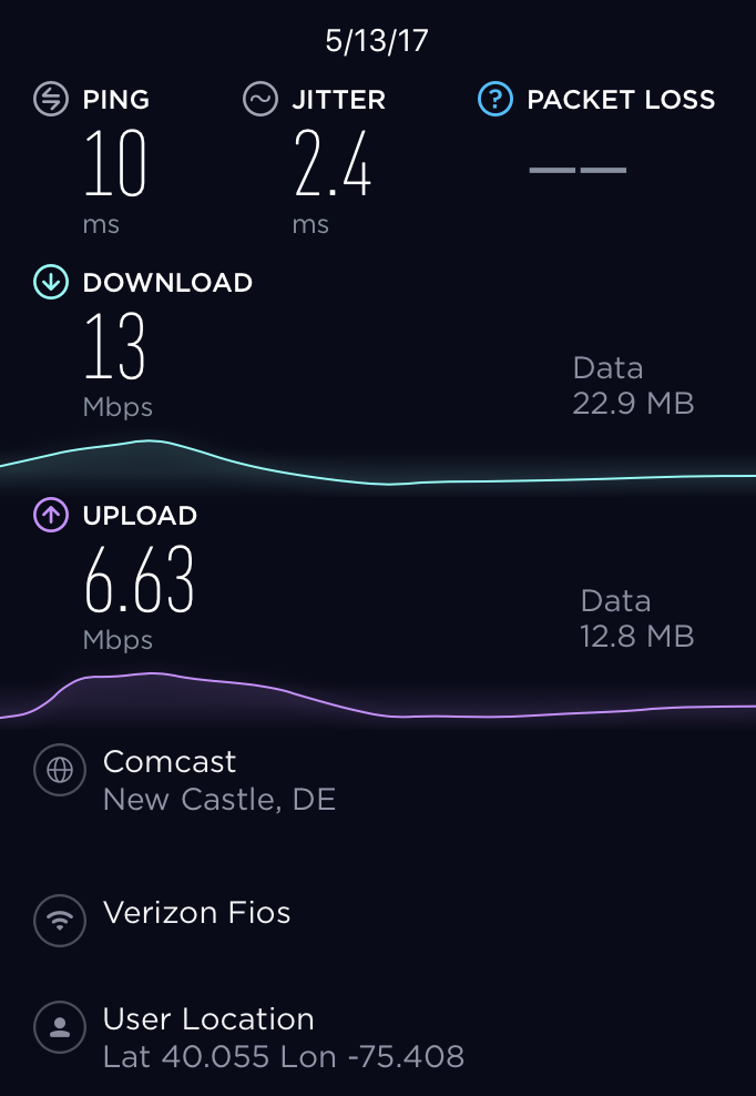 The result has not changed. My MBP is showing latency that is all over the place without any rhyme or reason. To make matters even worse, browsing the web has been also terrible today. I even get a socket error when I try to do a speedtest! Check out the speedtest results I am getting!