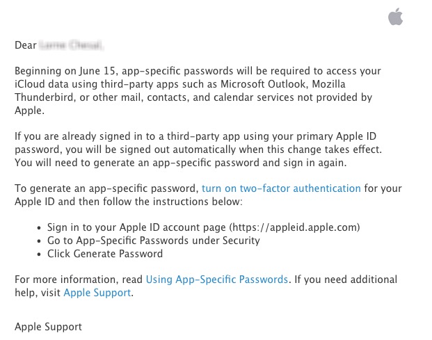 So, it looks like the App-specific password is no longer required for FaceTime and Messages (which is something I was wondering about). I'm using Two-Step, so maybe it was never required for those apps for Two-factor, but now it appears that it is only needed for 3rd party apps that use iCloud data as the email has indicated.