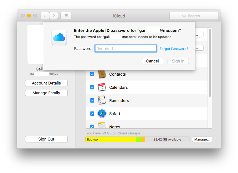 I am particularly interested in the fact that the message "The password for me@me.com needs to be updated" did not mean it needed to be changed - just signed in again. Good to know in future when we get posts where people are unhappy because they are getting prompted to "update" their password, it may not actually mean it needs to be changed.