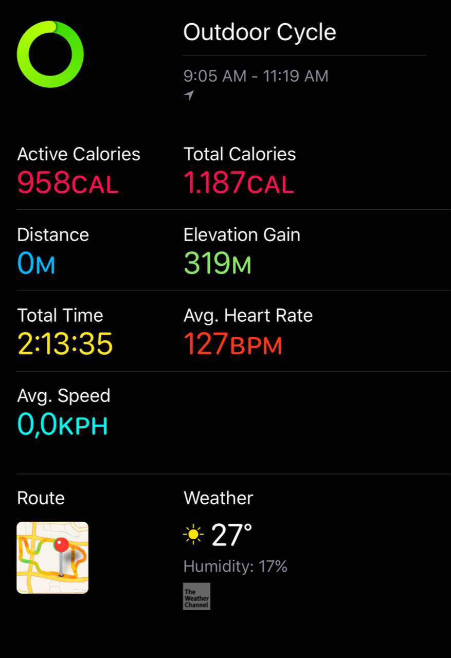 Yesterday, I commuted to work on my bike. The ride is approximately 17 miles. On the ride in, my watch recorded a distance of 252 feet. On the ride home, it said I went 5.73 miles. Both, obviously, are far shorter than the actual distance.