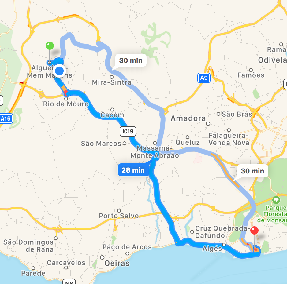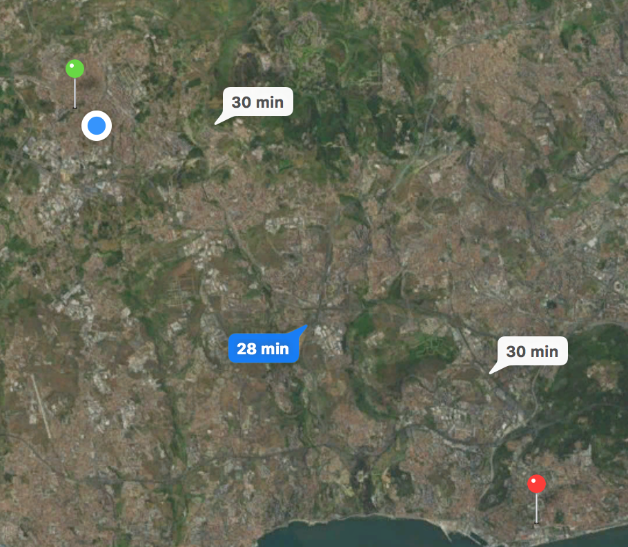 Using Satellite, you see the expected duration, and the marks, but not the route: