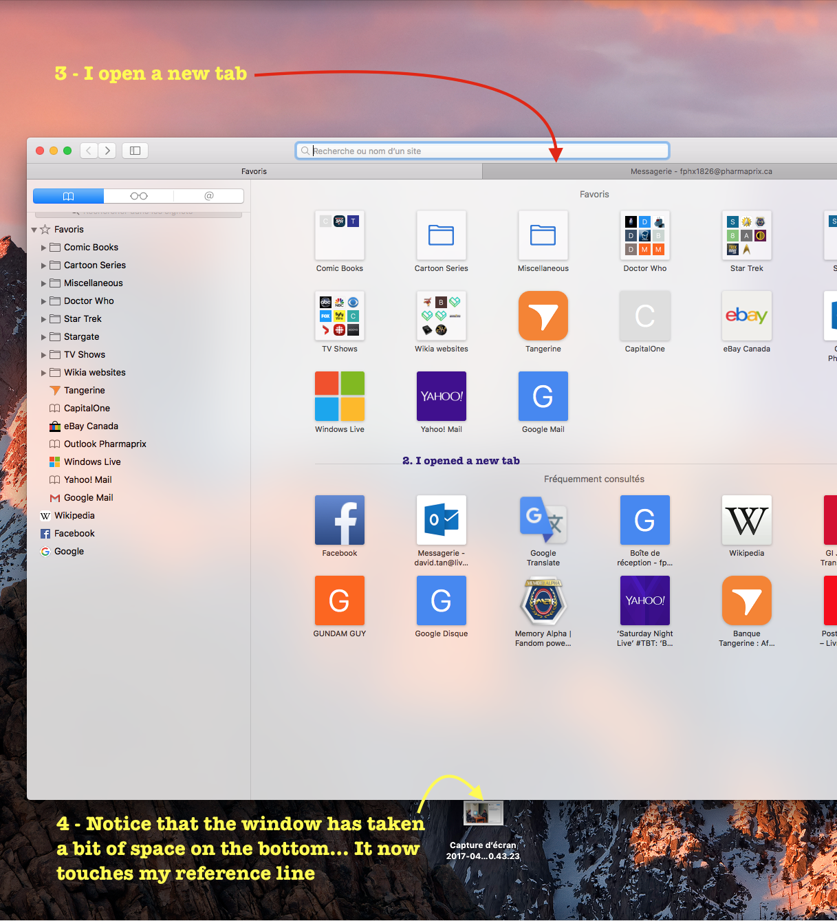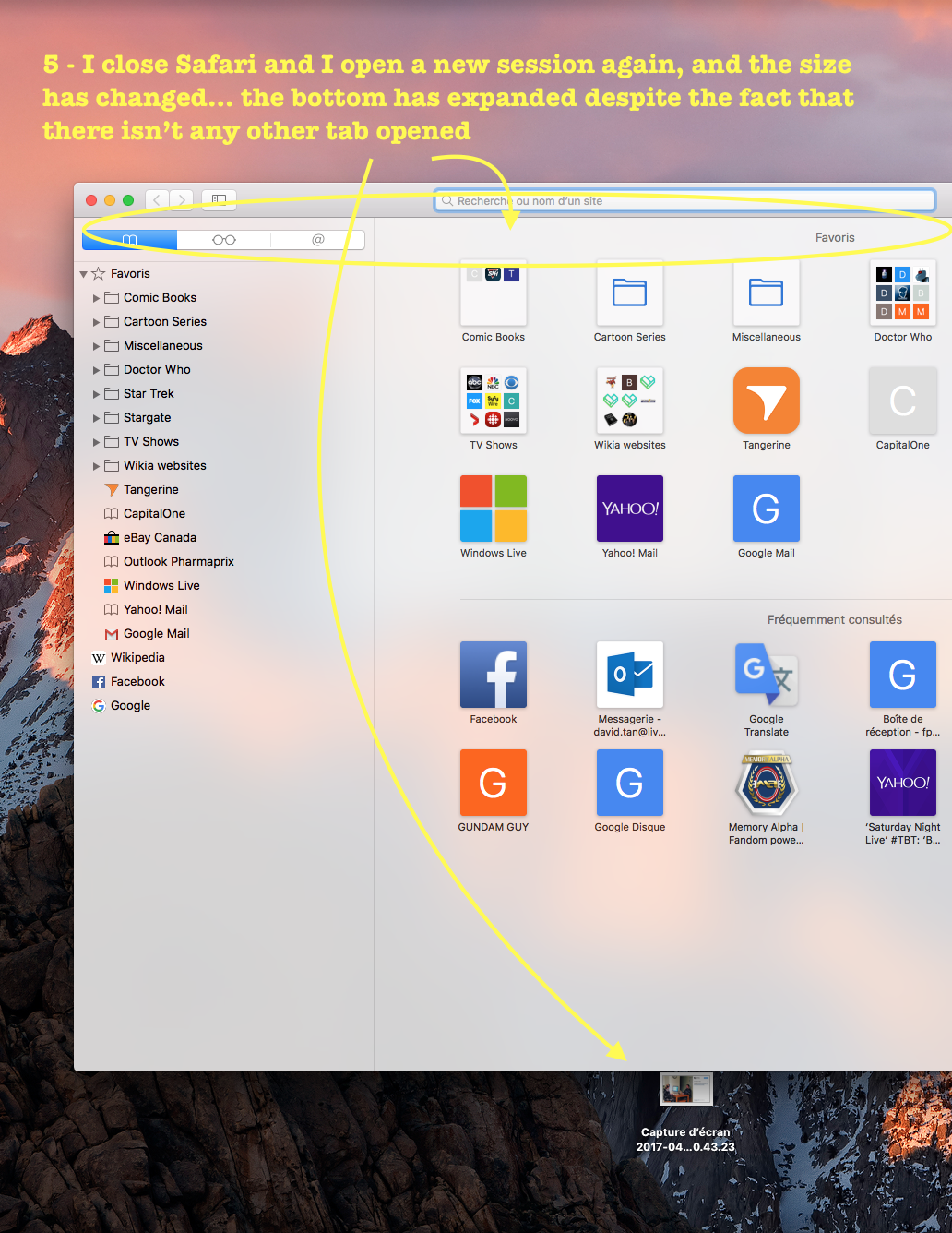 For a few months now, I've noticed that the window size of Safari on my Mac OS keeps extending towards the bottom... This usually happens when I open a new tab. If left unchecked, my Safari window which used to be centered on the screen will continue to 'extend' vertically in size until it reaches the bottom of my screen. It's just getting bothersome. Any ideas?