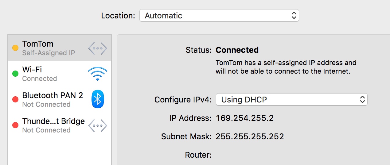 1) The TomTom connects to the PC as a network adapter that generates its own network on the PC for it to update.