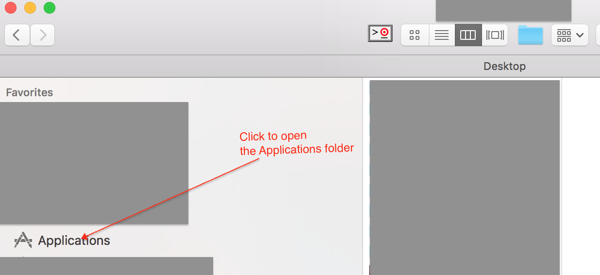 Open a new Finder window (command-N). In the sidebar, you'll see "Applications". Click it.