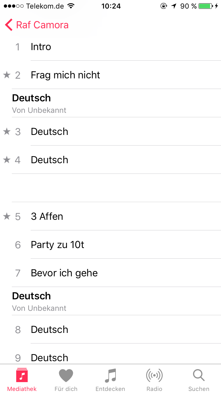 I use the grouping field in iTunes in order to be able to add the language of a track. For some reason some(!) albums on my iPhone suddenly got messed up. Instead of showing the titles, some(!) tracks are displayed with the information of the grouping field. Plus, those tracks are "grouped" within the album view by showing the language and "by unknown" above them. When I play the track, all the information is shown in the "currently playing view".