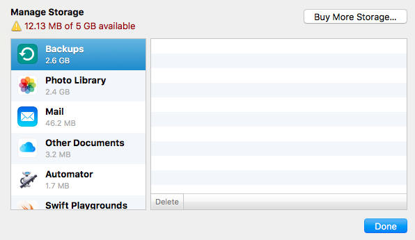 iCloud backups filling 2.5GBs but no backups