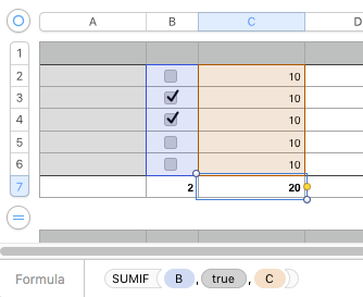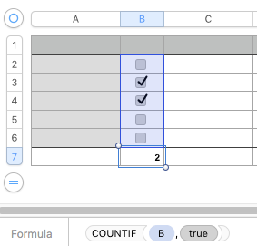 In Numbers, I have a column of checkboxes. At the bottom, I'd like to see how many of the checkboxes in the column are checked.