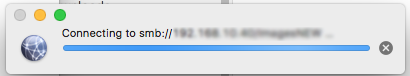When I try to connect to it (CMD+K), I normally enter the details of the share, then a dialogue box comes saying 'Connecting to SMB://.....' and another dialogue bow comes up asking for the username and password.