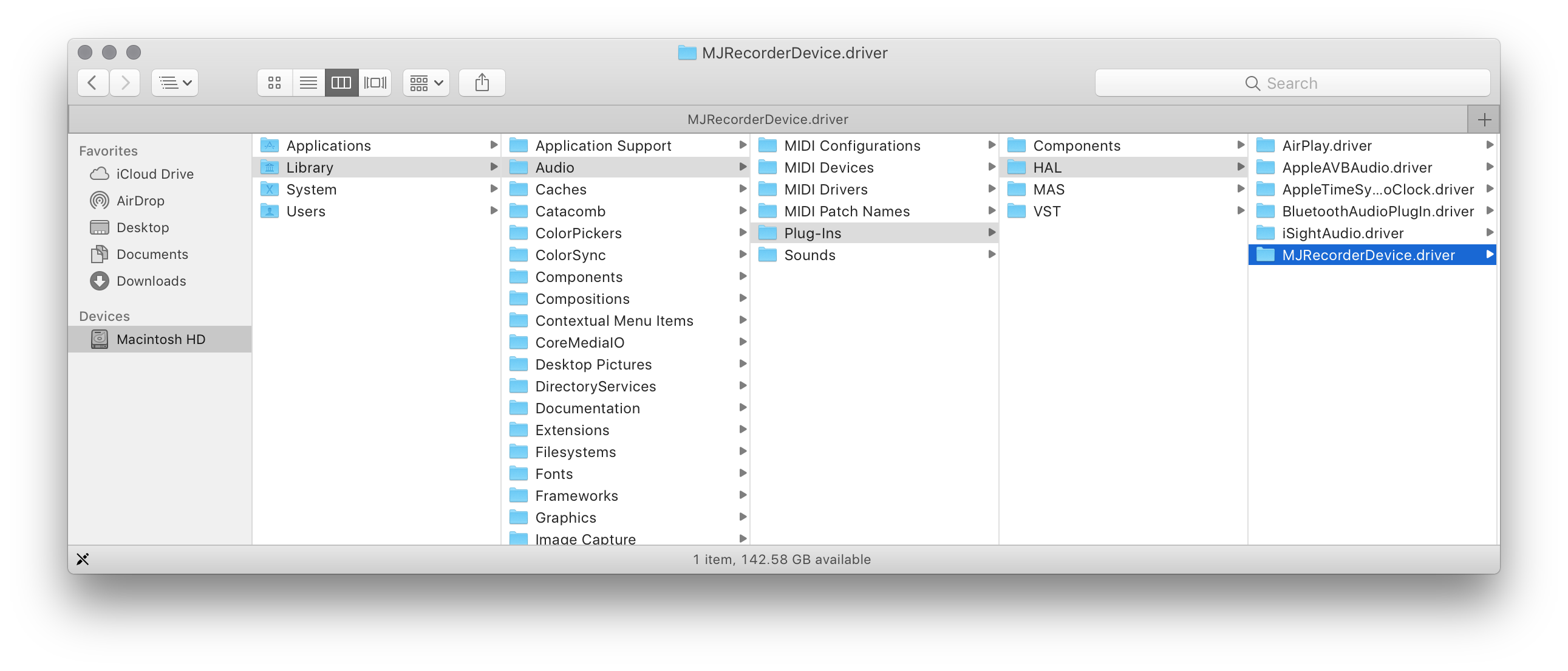 Delete "MJRecorderDevice.driver" located in /Library/Audio/Plug-Ins/HAL/