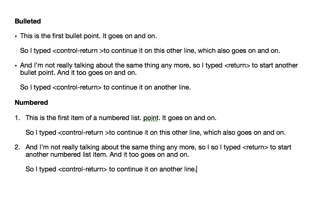 Right now if I press enter the next paragraph automatically becomes "2", if I backspace out the "2" the paragraph loses it's indent and the computer no longer thinks of it as a continuation under the initial point.