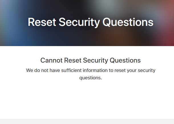 Reset Security Questions Cannot Reset Security Questions We do not have sufficient information to reset your security questions. How to fix it