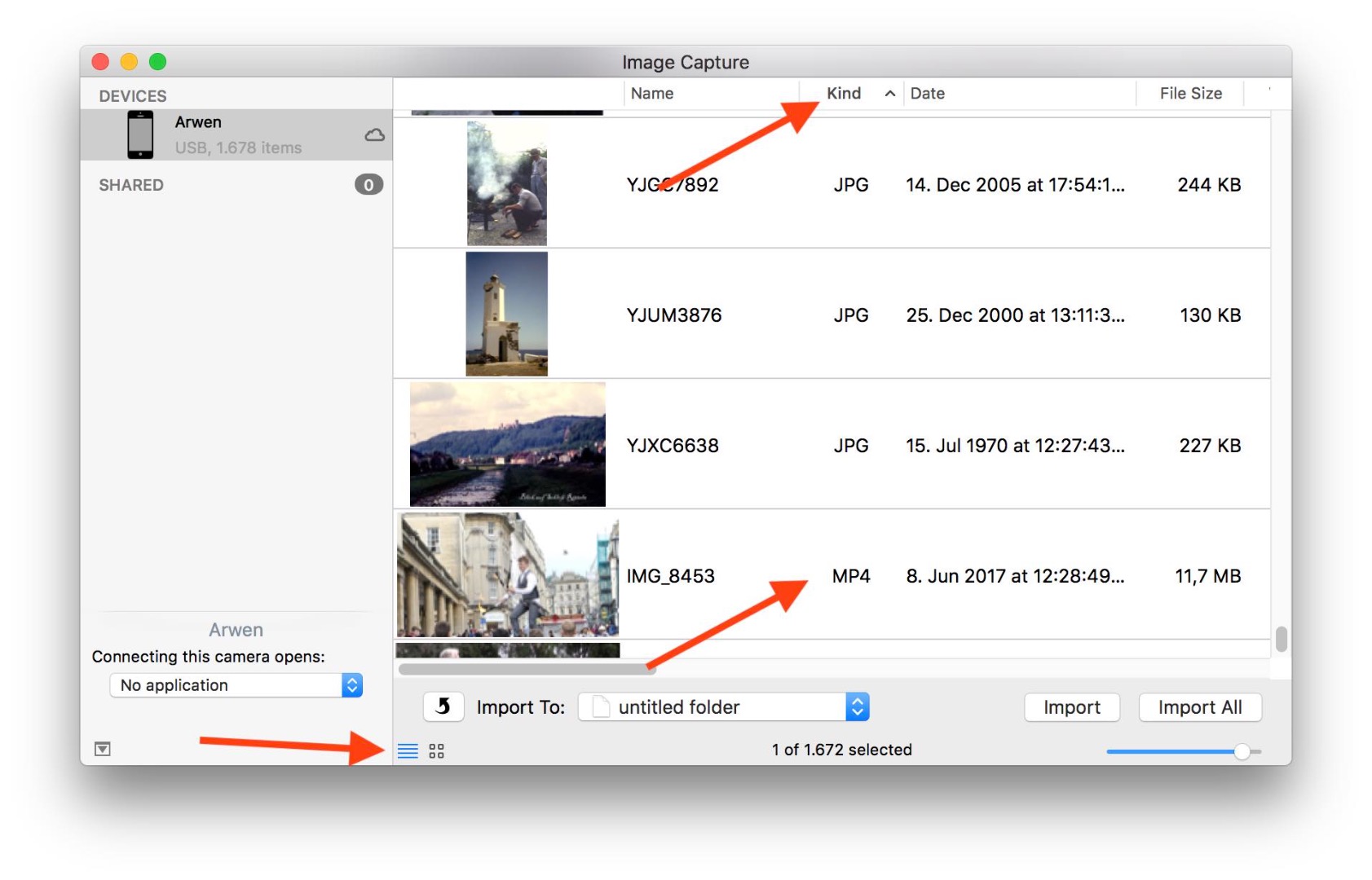 Please tell me I am wrong in that impression and how to identify photos vs. videos in selection of what to import from an iOS device iPad/iPhone, etc. Thank you!