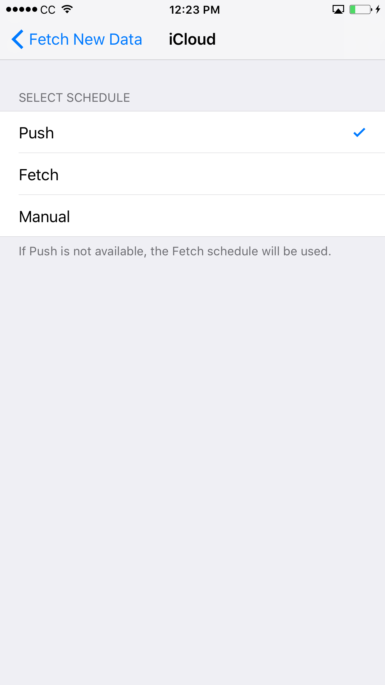 Push - mail server sends signal to your device when there's a new message and delivers it to your device