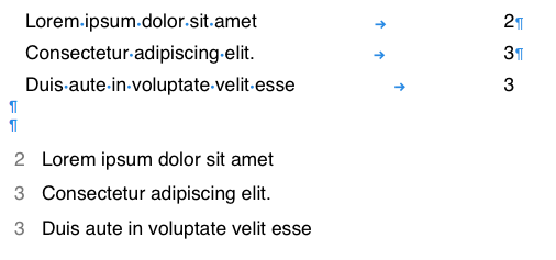 How do I format my table of contents in Pages so the page number appears before the chapter heading (instead of after which seems to be default)? I have looked in the "text" panel of the TOC tab, the styles panel, and the pulldown menus but can't seem to figure out how to make the TOC formatted the way I'd like it to look. Below (left) is how it is formatted automatically by Pages (with some tweaking on my end). Below (right) is how I'd like it to look with the page number first and in a different color (grey) than the chapter heading.