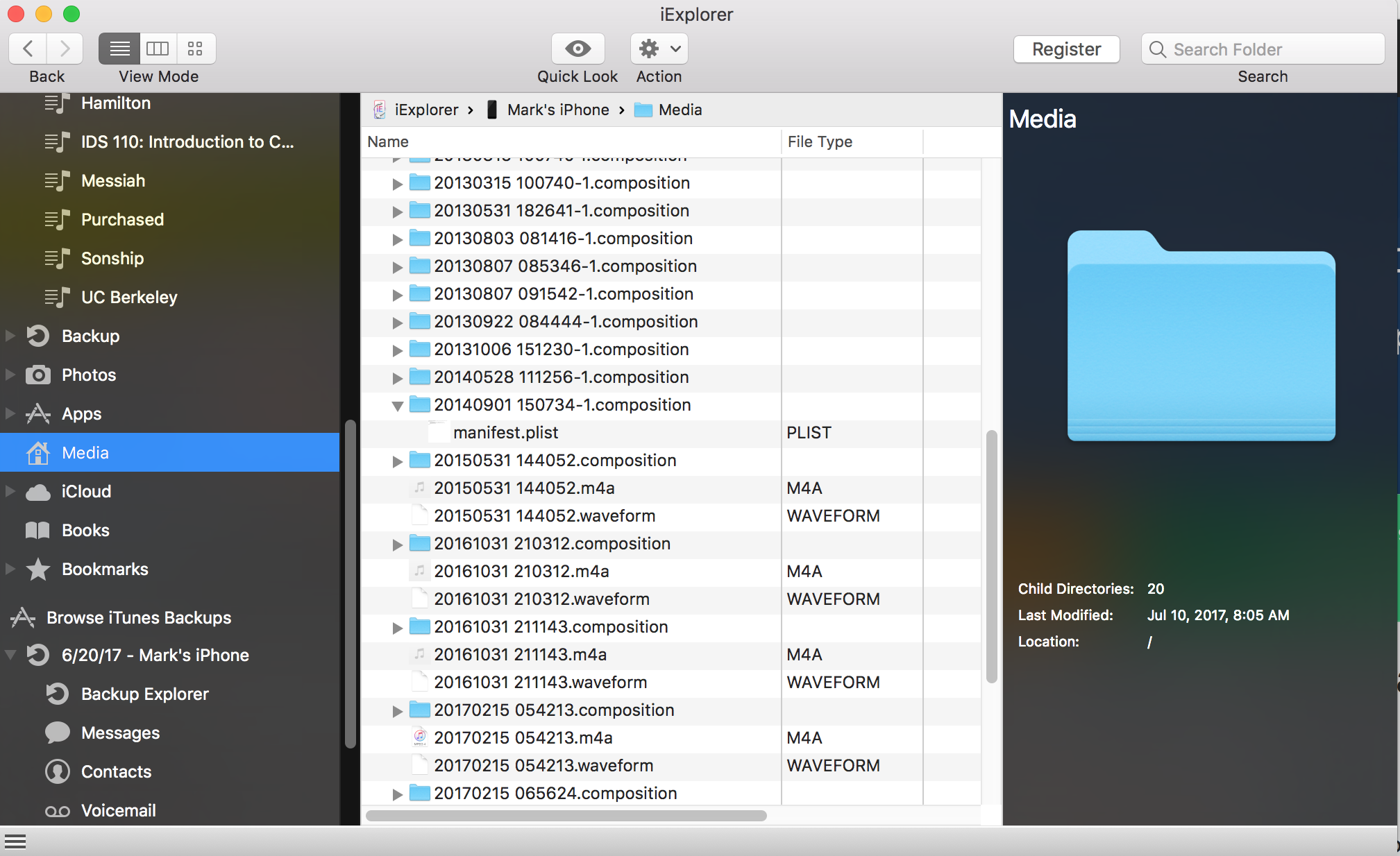 The problem has been that I am unable to send the file from the phone - with Airdrop, it simply says, "Failed." Using the demo version of iExplorer, I was able to access the folder in which other Voice Memos are stored. Those that can be played back have an .m4a file present, however, this one only has a manifest.plist file, as shown in the attached picture.