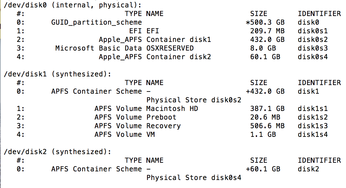 3: Apple_Boot Boot OS X 134.2 MB disk0s3