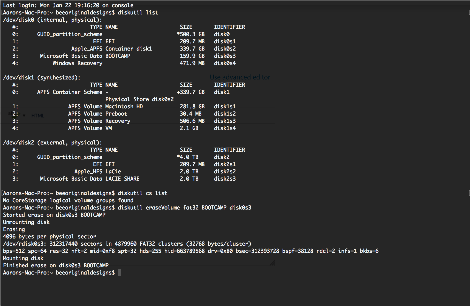 6: Apple_HFS BOOTCAMP 258.9 GB disk1s6