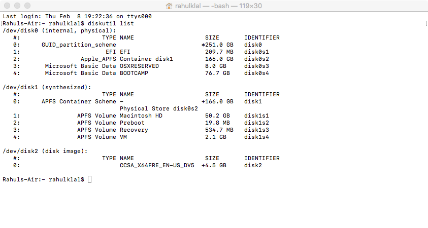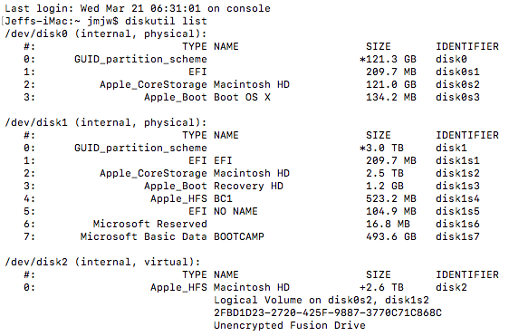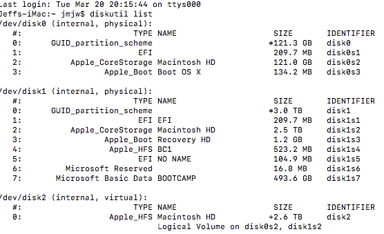 2: Apple_CoreStorage Macintosh HD 120.9 GB disk0s2