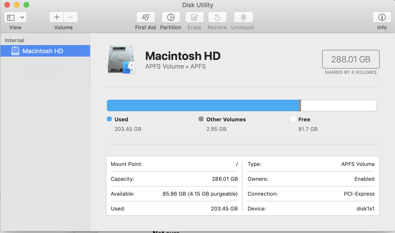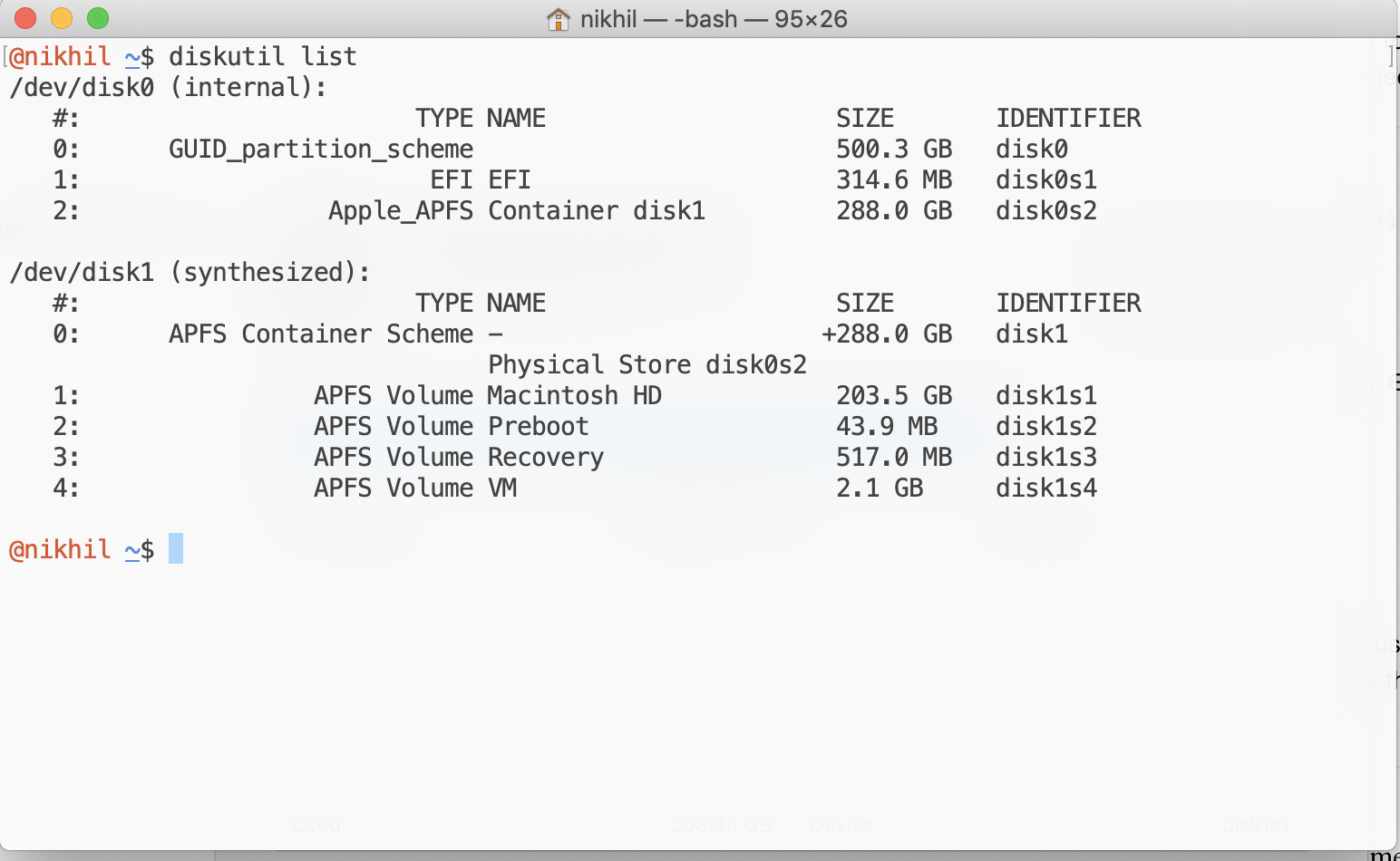 | | APFS Volume Disk (Role): disk1s1 (No specific role)