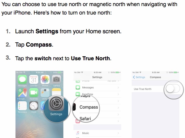 As I'm no expert with the Compass (in my iPhone 5c) and had looked, didn't find