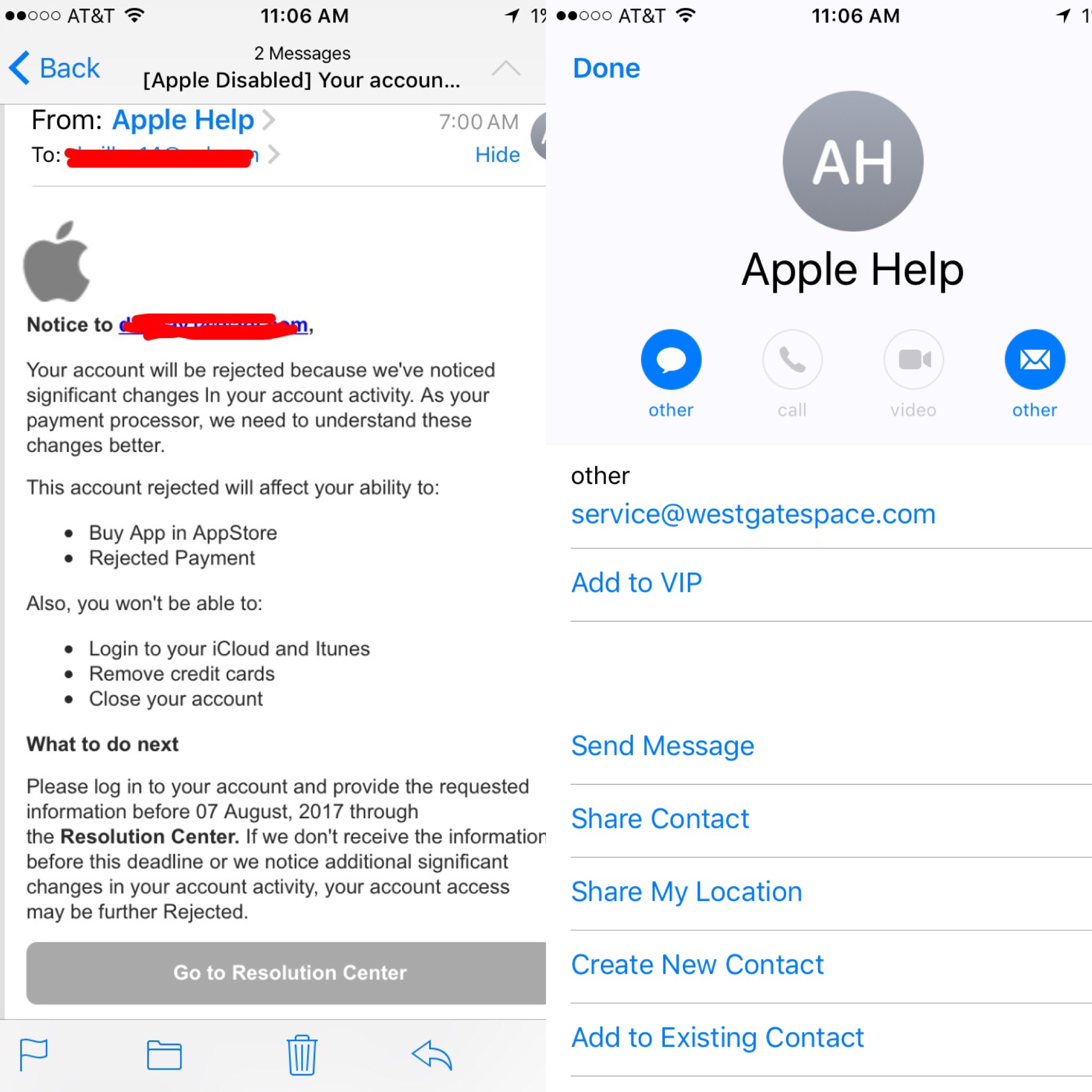 The same thing happened to me this morning from service@westgatespace.com. Said I needed to verify my identity or I would lose my account forever basically. Unfortunately I typed my social security number and address and hit next before realizing it was fraud when it came to the credit card page - I use PayPal, not a credit card. Then had to open a 90 day fraud alert on my info just in case. Also upon sending a nasty email back to them the link was then disconnected. The strange thing was the website started with "applied.apple.com" so I have no idea how they did it. But after going back through again it let me use a random password and none of the links on the page worked. I hope these people rot in ****