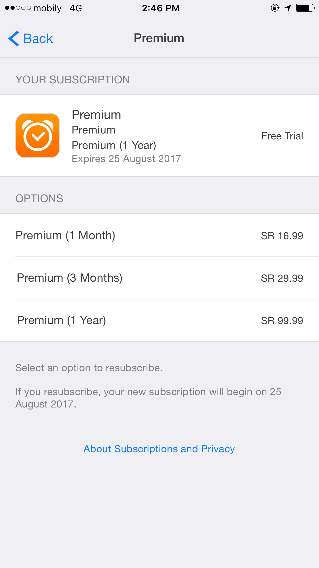 That shows that it's set to expire and end on 25th August, and that it won't renew unless you resubscribe via one of those three options