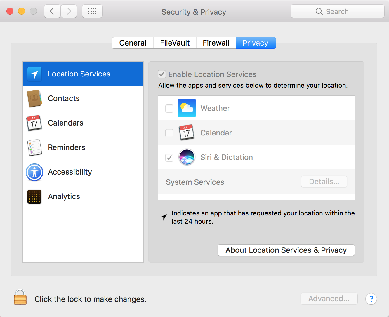 Apple>Preferences>Security & Privacy