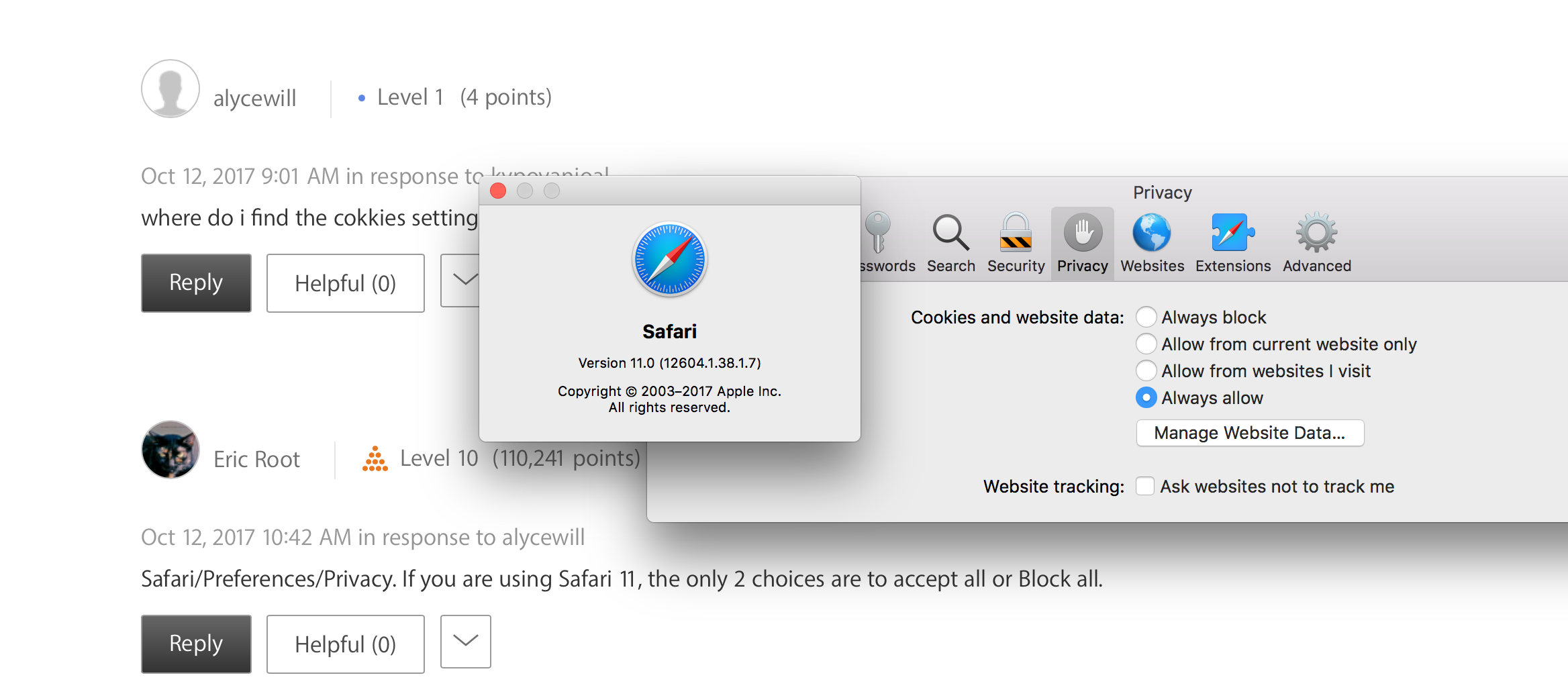 An article : Safari for Mac: Manage cookies and website data using Safari