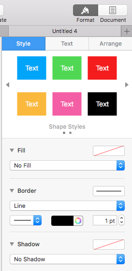Format Panel > Style > Fill > No Fill and Border > Line 1pt.
