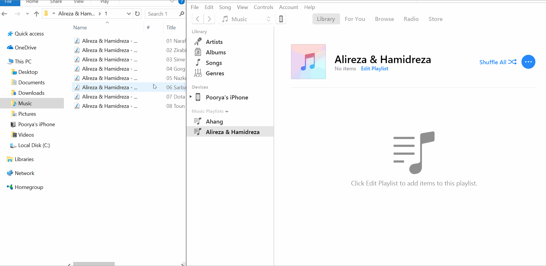 I don't know what really is wrong with the team that manages itunes in apple. Because seriously every time they release a new update, they destroy something that had worked well for years. Now I updated itunes to 12.6.2.20 which is the latest as of now, but I no longer am able to create a simple playlist like I did before. I used to drag a folder of my desired songs and drop them in the section that says edit playlist but now once I do that, the mouse cursor changes to a stop sign and after releasing the left click, nothing happens. Can any body tell me what can I do to create a simple playlist without adding all songs to the itunes library and choose from them? As far as I know, that is the only option left which means that I have to add 3000 songs all at once to the library and choose from them for each of my playlists. Oh and by the way I am on a Windows PC. Thanks.