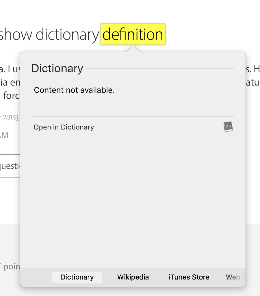 And still it is not finding the meaning of a word , enter in user library macOS Sierra: Library folder