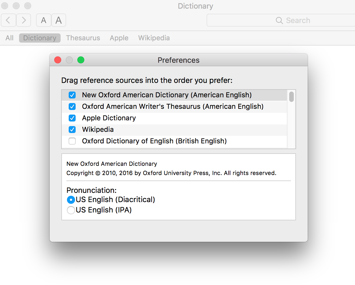 By mistake the image was posted two times , enter into the user library , find a folder Preferences > inside it search for com.apple.DictionaryServices.plist to the desktop , restart the machine .