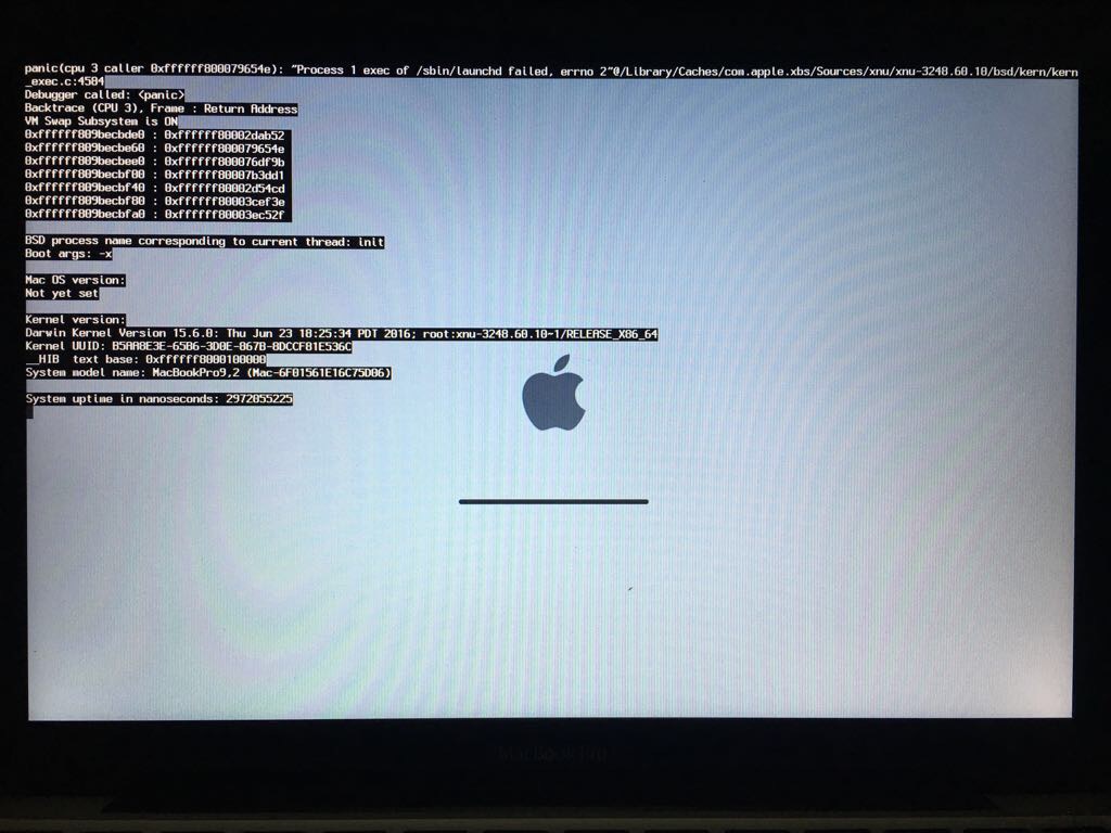 Macbook pro stuck at boot screen with apple logo and 100 percent progress bar.