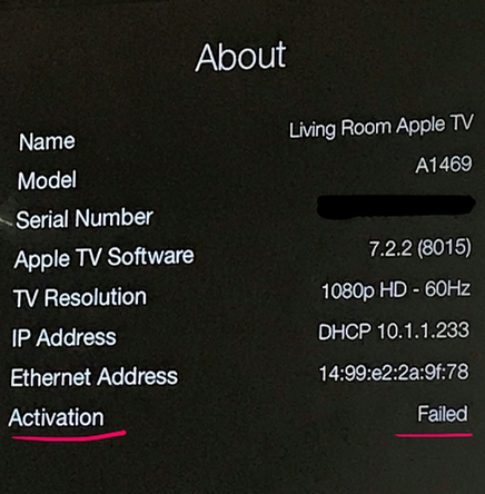 Apple TV 3 - Activation Failed & No AirPlay after restore