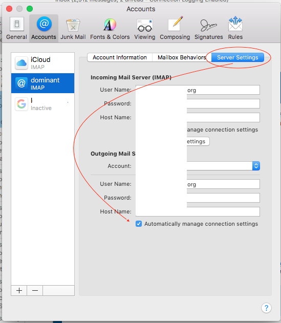 Here is some log data with El Capitan email account set with SSL and pop works great but no smtp!