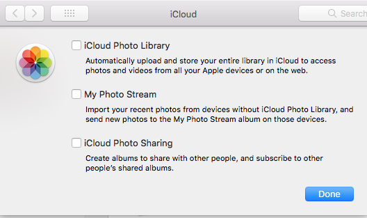iCloud Photo options are all turned off.
