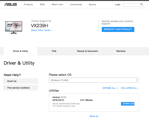 Utility = driver? I unistalled the utility program, created a Windows System Restore point, reinstalled the utility program, tried the compatibility mode and still get the same warning: "This program can only run with ASYS monitor devices!".