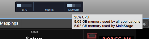 Hi I noticed ever since the update of MainStage, that the memory meter looks different. It now has two indicator bars. One is showing 1/4 and the other is almost half and seen in the picture. I’m not sure what the lighter grey bar is indicating. I’m afraid that MainStage is limiting the amount of ram used. I have 16 of ram so I want use everything needed.