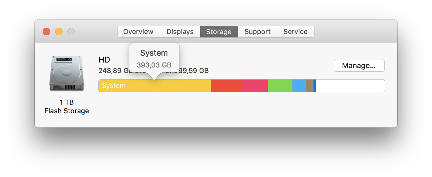 Interestingly, the backup snapshots are gone, but the system still takes about 313 GB of my SSD (see the screenshot).