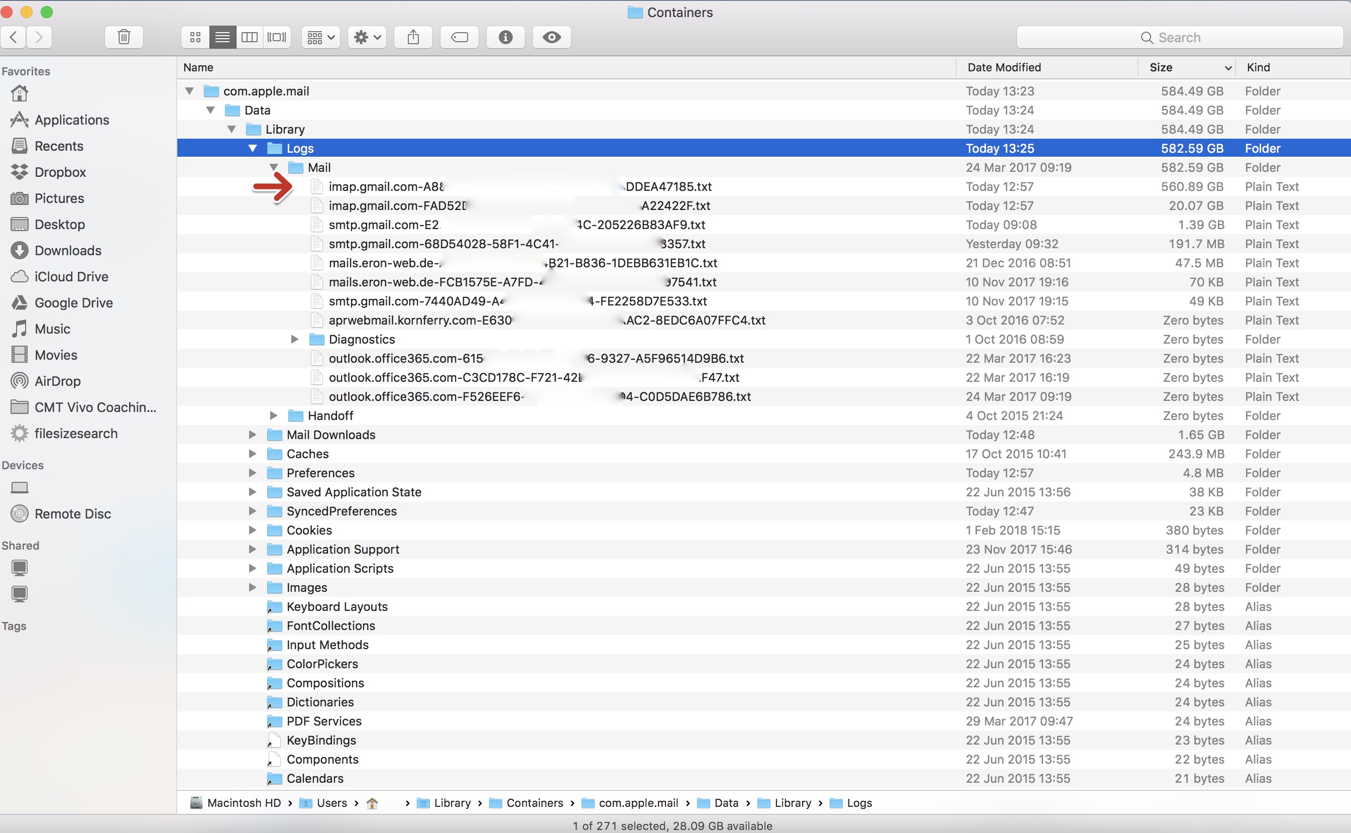 Please check if you are using Mail.APP then you might have connection log option on and that is creating logs in to below folder.