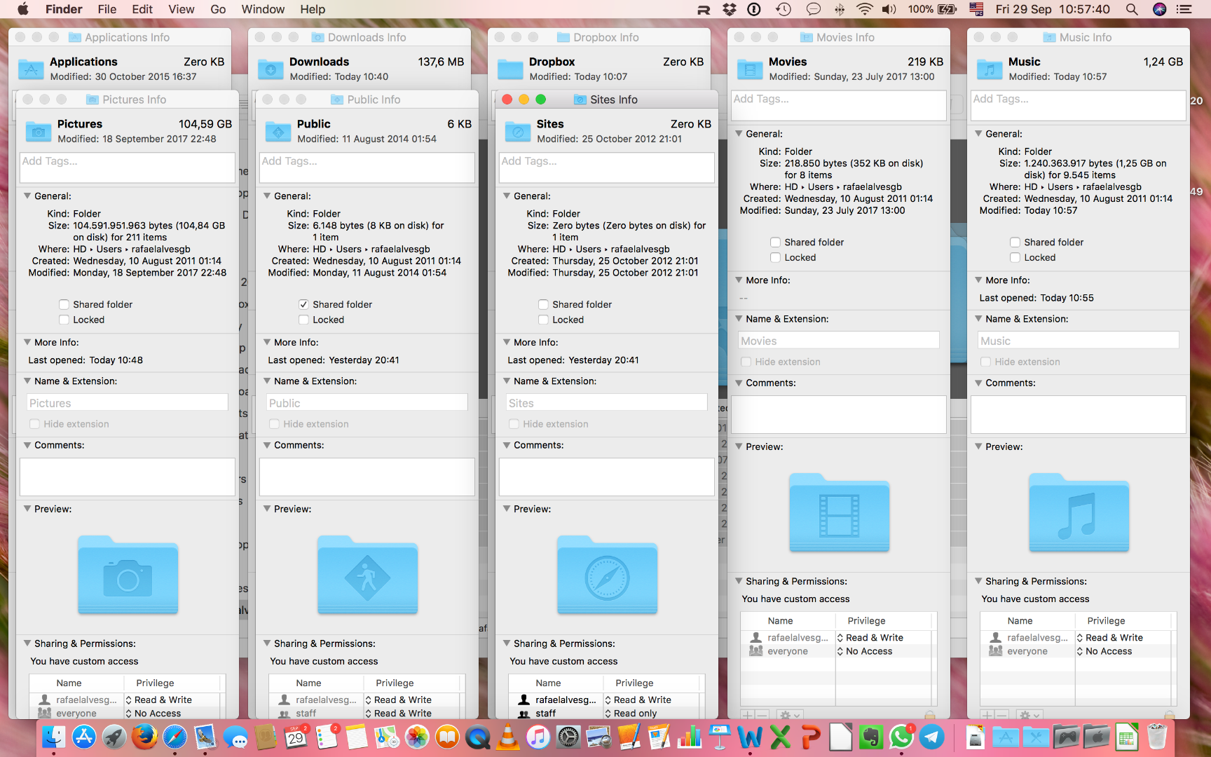 1) My user folder has 100GB of photos and 1,24GB of Music, as you can see in the photo below (I used "Get Info" function on all folders that are in my user folder), but I could'nt find the other 170GB of storage. I think this is a system problem. Any ideas?
