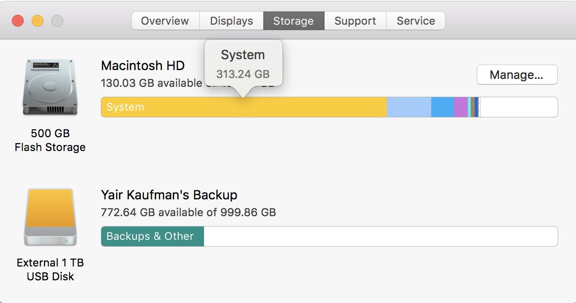 Interestingly, the backup snapshots are gone, but the system still takes about 313 GB of my SSD (see the screenshot).
