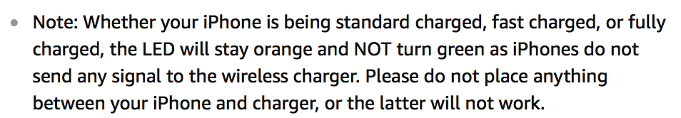 Or if the wireless charger has a feature such as "breathing LED" while charging, the LED is always on while it's supposed to stop when fully charged.