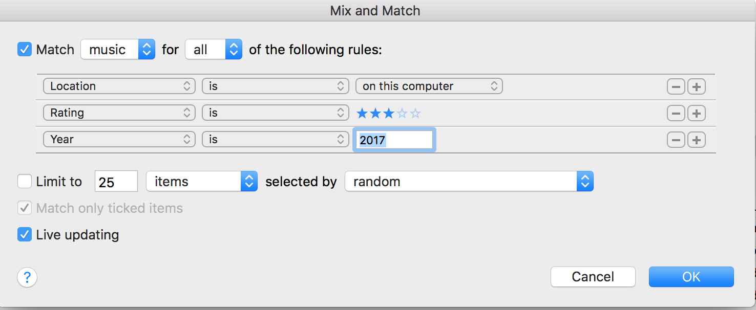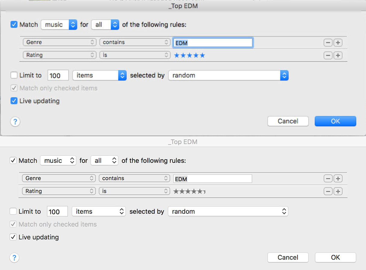 Hi, i've just started using iTunes 12.7 and I notice that in the "edit rules" section of a smart playlist (right click on a smart playlist) the ratings option is broken.