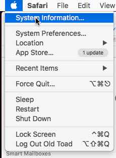If that fails to fixe the issue hold down the Option key and select the ➙ System Information menu option.