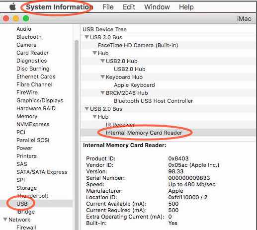 Help me to solve the missing SD card reader on my iMac with High Sierra 10.13.2: