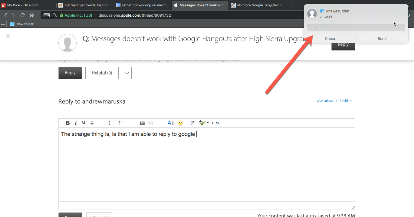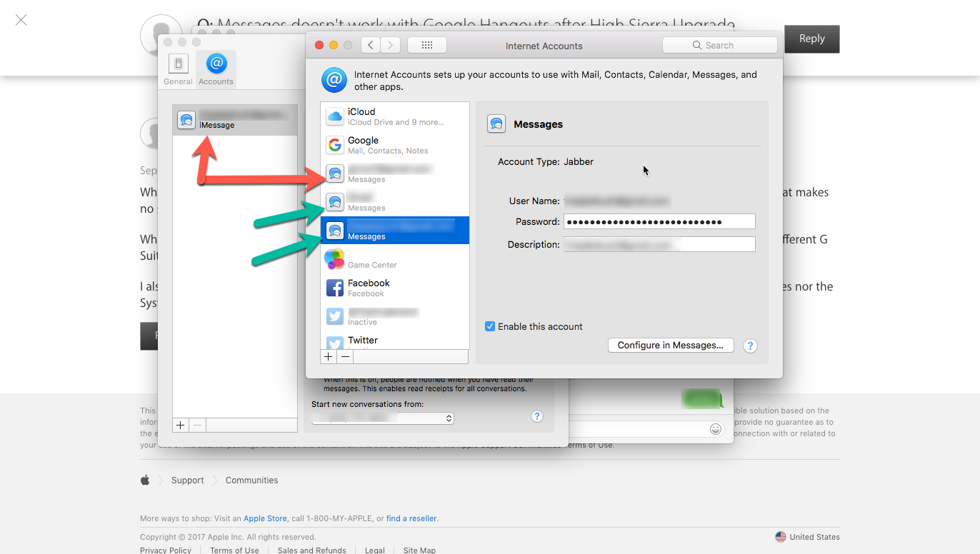 Messages doesn't work with Google Hangouts after High Sierra Upgrade